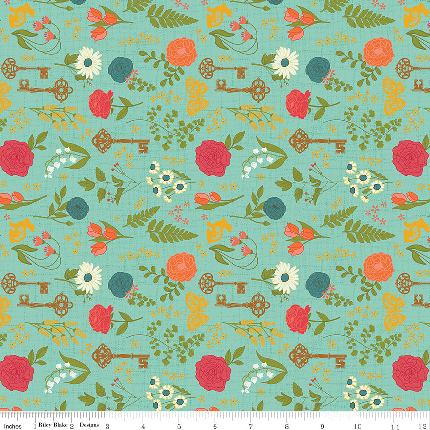 Bring delicate beauty to your next project with Pressed Flowers – Glacier from the First Blooms collection by Heather Peterson for Riley Blake Designs. This 100% cotton fabric features a soft blue background adorned with vintage-style keys, floral sprigs, and fluttering butterflies—perfect for adding whimsy and elegance to quilts, apparel, and home décor.