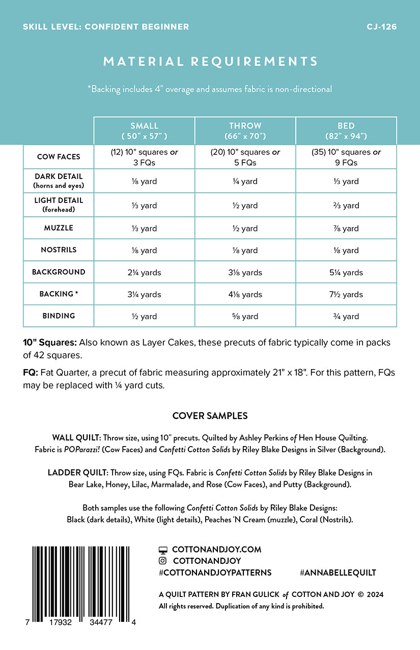 🪡 Note: Be sure to choose the option with backing to receive 4 1/4 yards of the Cheater Print from the collection