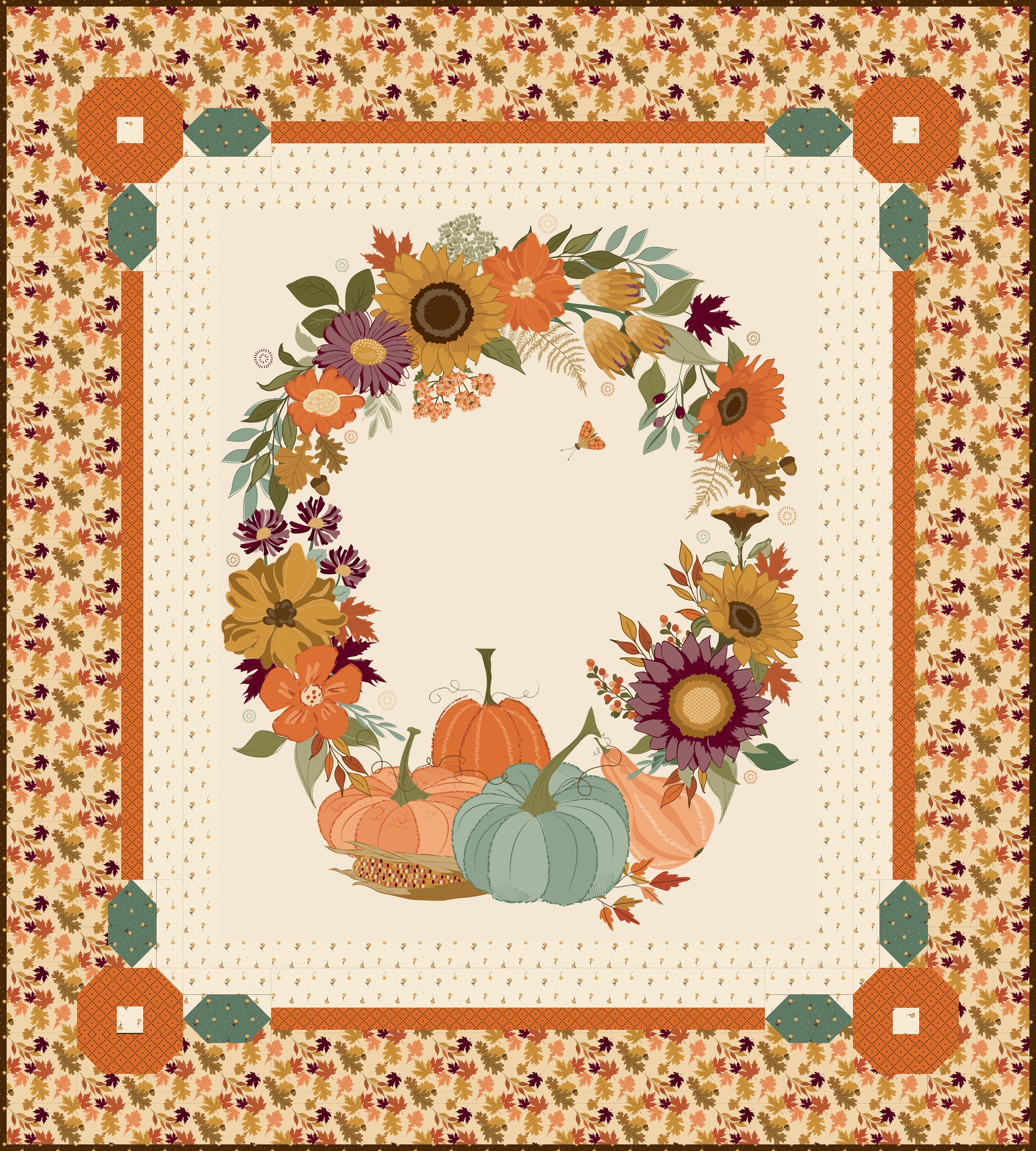 Autumn Wreath Panel Quilt Kit | Sandy Gervais for Riley Blake Designs – 58.5" x 65" Fall Quilt Kit